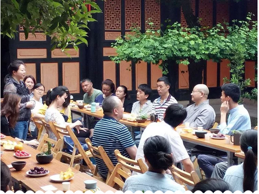 法师看到我们将他的座位摆放在最前面,笑说到:"这跟上课有什么区别呢?我还是坐到你们中间吧",坐下后又问道:"今天究竟是交流会?还是探讨会?还是一个我主讲的会?我们就放轻松一点吧"。法师体贴的言语和细节,一句轻松的开场白,马上拉近了学员与法师的距离,也让大家期待、激动甚至紧张的心情一下子放松下来了。